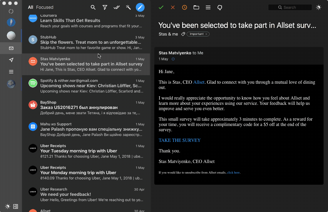 Personally, I love the ease of combining all my work and personal accounts into one email client. It works well on all my devices and feels the closest to Gmail with a few bonus features (looking at you, AI).