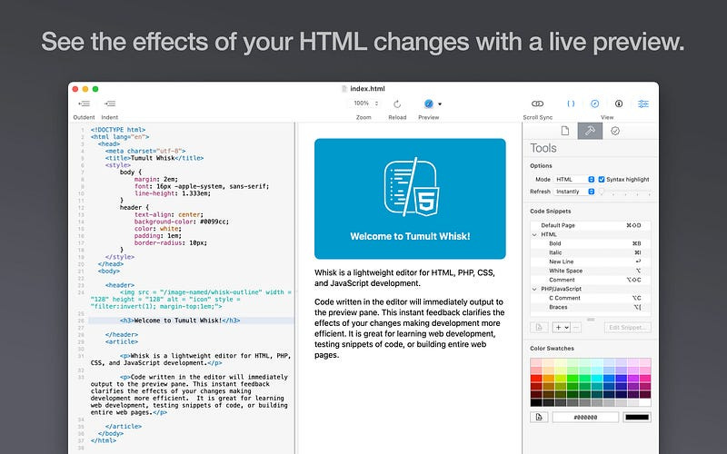 Whisk is a live HTML and CSS editor designed for web development. The app provides real-time previews as you code, eliminating the need to switch back and forth between your editor and browser. This live feedback can speed up development and make the debugging process more efficient. Whisk also includes features like auto-closing tags and syntax highlighting, making the coding process smoother. Whether you’re a seasoned developer or just getting started, Whisk offers a more interactive way to work on your web projects.