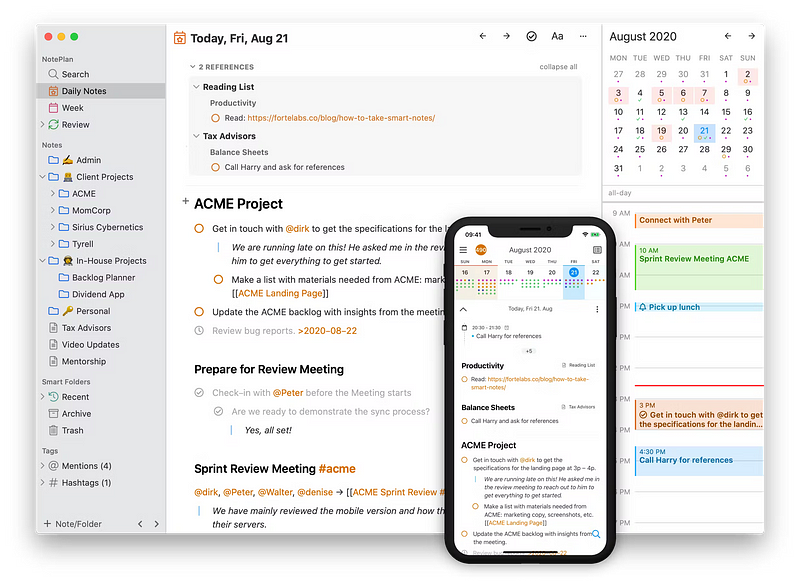 NotePlan merges the best features of a note-taking app and a calendar to create a unique task management solution. You can jot down tasks, notes, and reminders in Markdown and seamlessly schedule them into your calendar. NotePlan offers a unified space to manage your tasks and schedule, making it easier to plan your day and get things done. Its focus on Markdown formatting keeps the interface simple and ensures that your notes are easy to read and quick to edit. If you like to organize your tasks and notes in one place, NotePlan has got you covered.